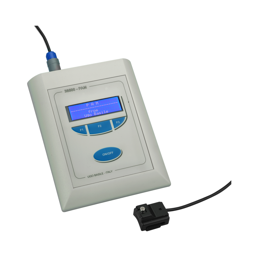 Анальгезиметр оснащен низковольтным синхронным двигателем и соответствует стандартам качества и безопасности ЕС. Оператор задействует педальный выключатель для запуска механизма, оказывающего давление.