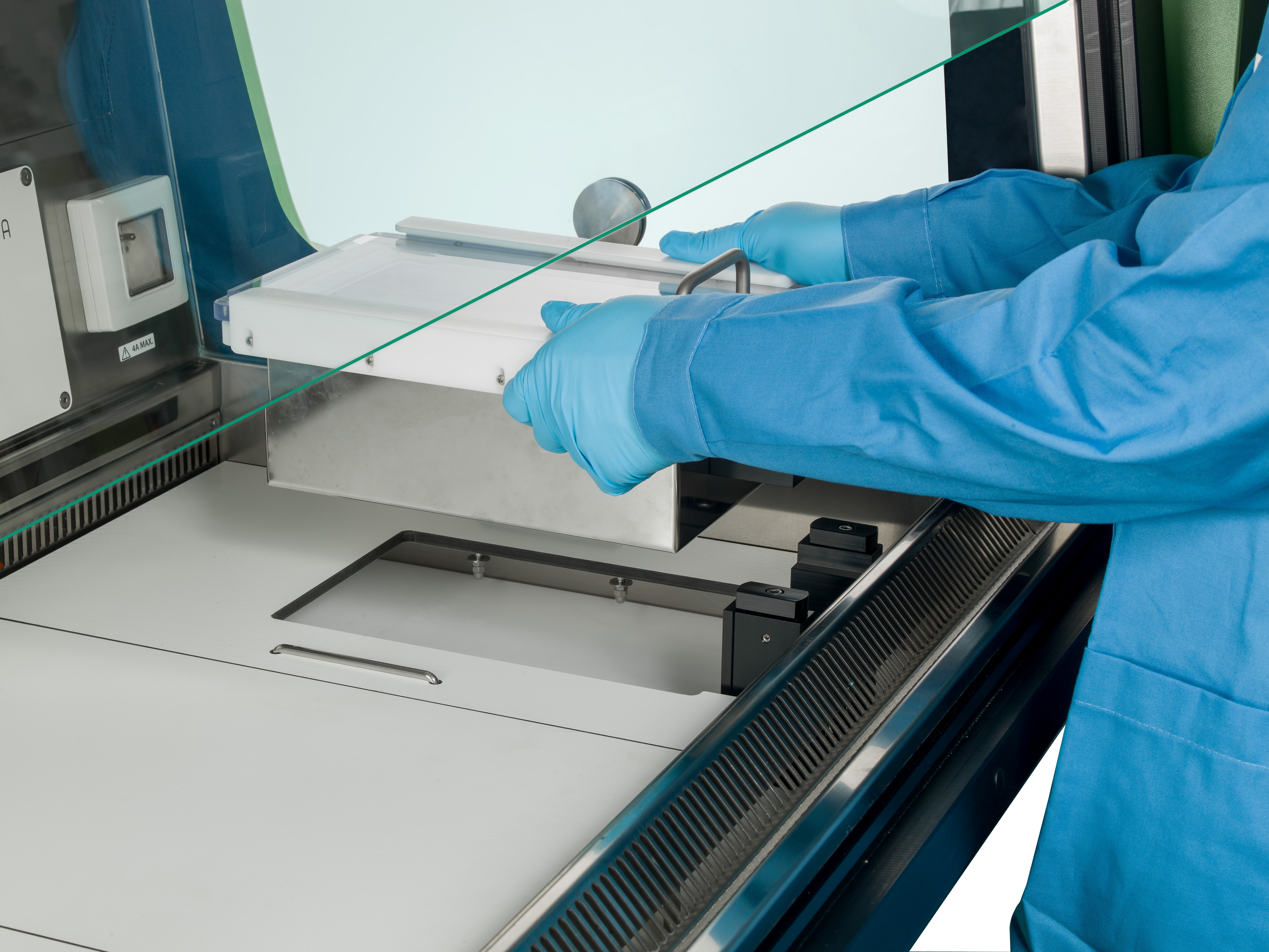 • Автоматическое окно с наклонными створками и регуляцией высоты: 250 мм в режиме станции биозащиты, 290 мм в режиме станции замены