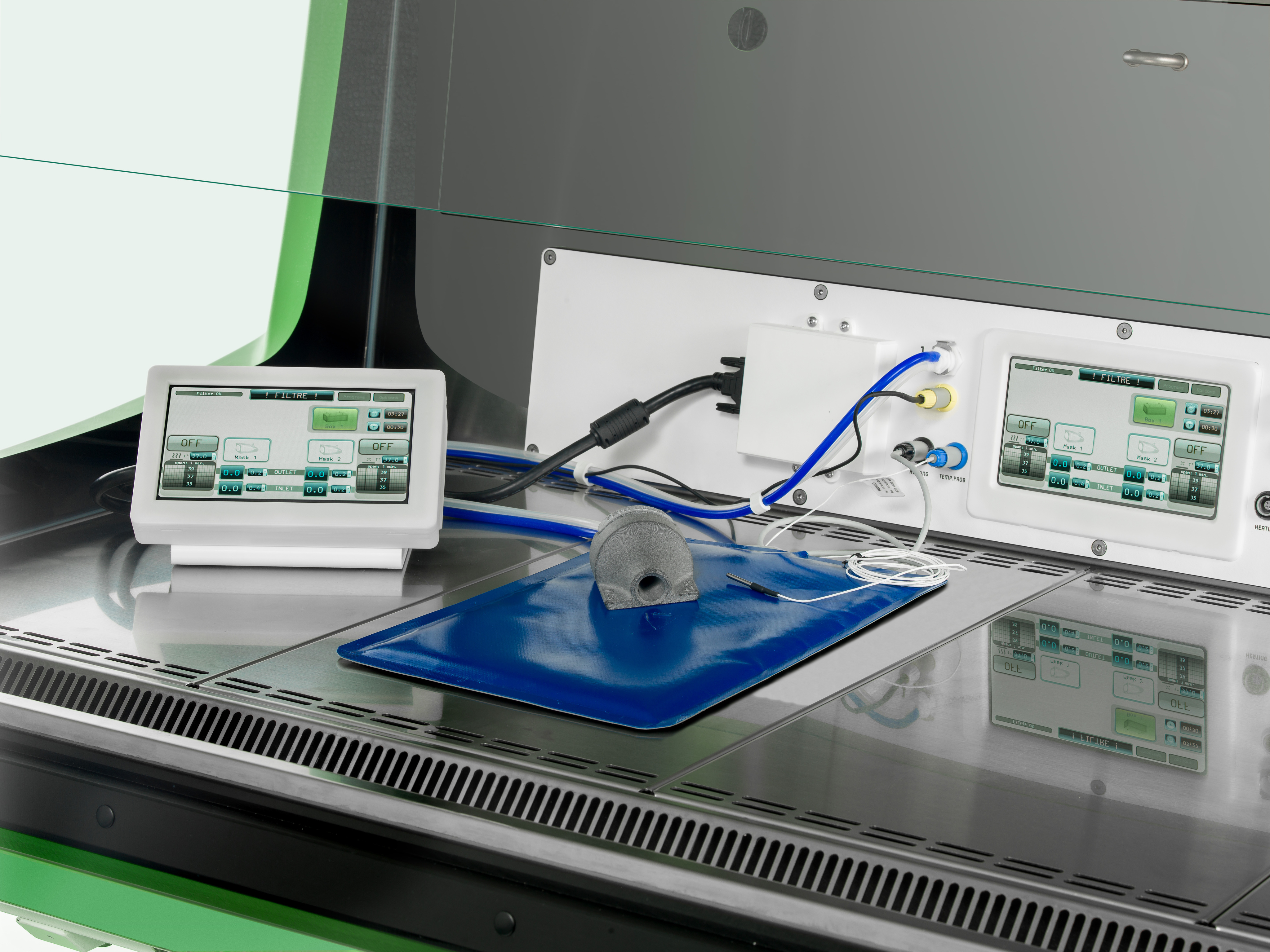 • Система анестезии MiniHUB от TEM SEGA оснащена тремя независимыми линиями управления (одна для индукционной камеры и две для масок) и 7-дюймовым сенсорным экраном с предустановленными протоколами