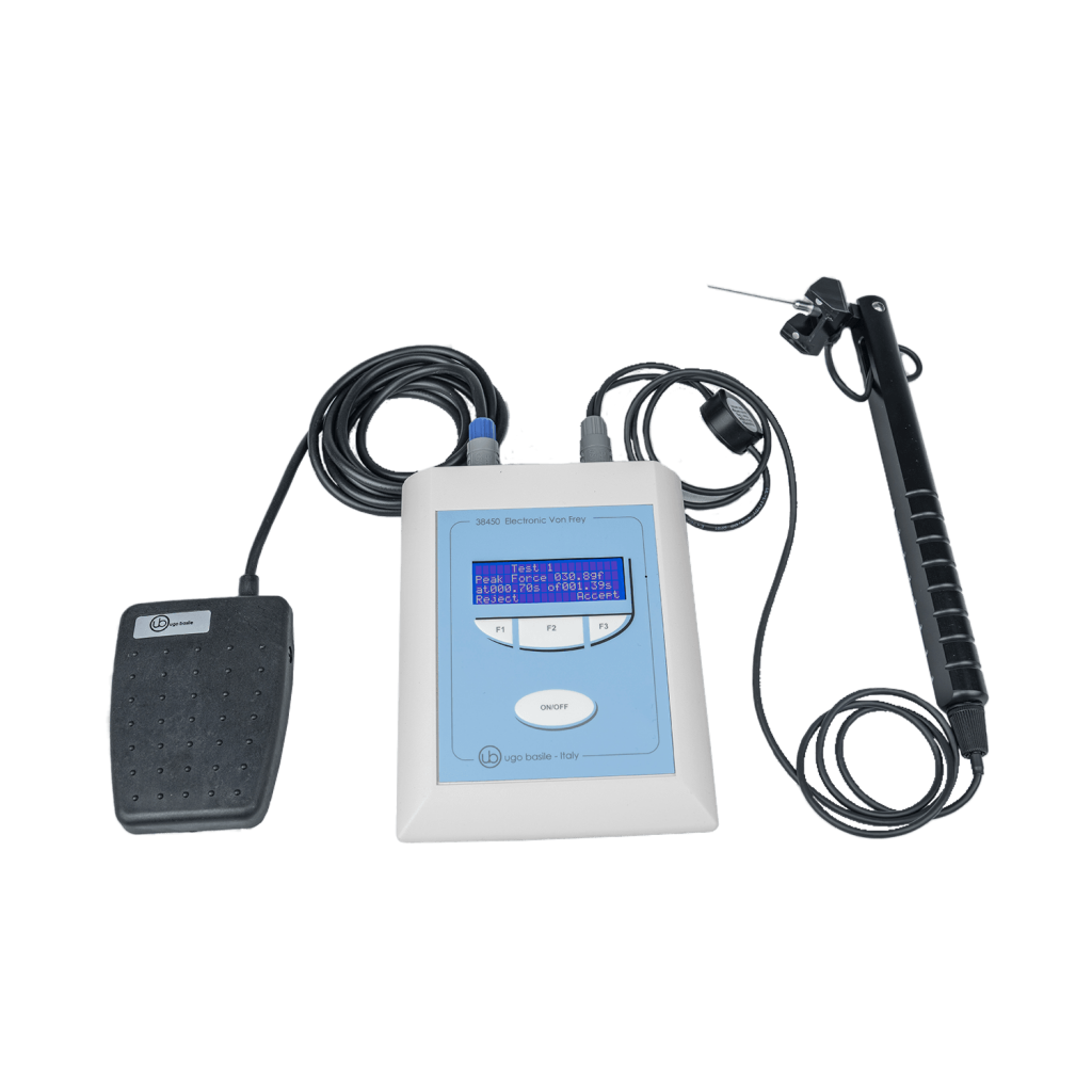 Снижение кожной чувствительности в первую очередь проявляется в неспособности обнаружить легкое касание. Электронный прибор фон Фрея разработан для количественной оценки чувствительности к легкому прикосновению у лабораторного животного.