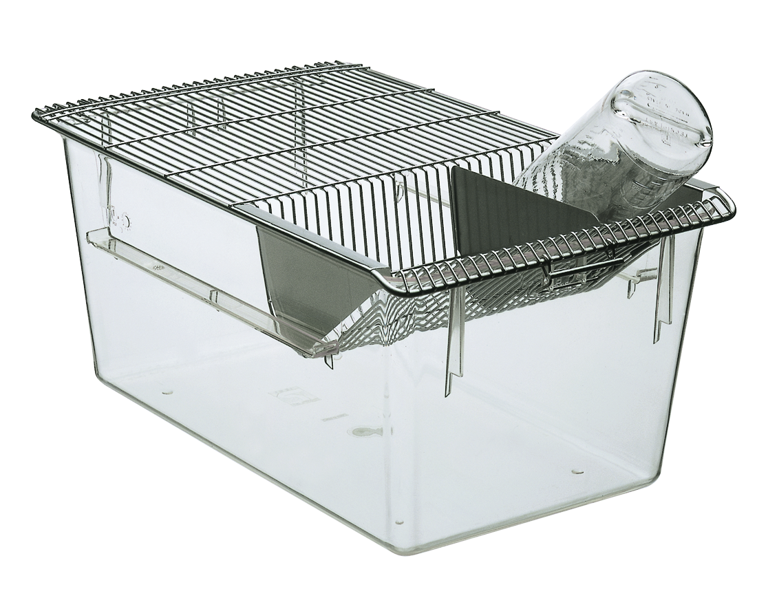 • Приподнятая нижняя решетка – для краткосрочного содержания с исключением возможности поедания подстилочного материала (может быть использована при подготовке к хирургическому вмешательству или для метаболических экспериментов)