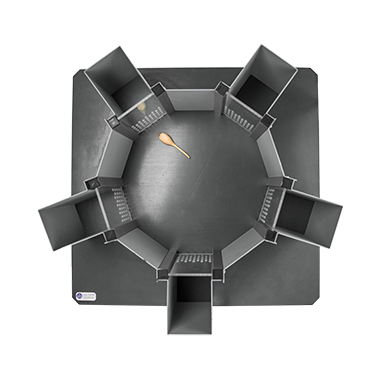 - Состоит из серого основания размером 50х50см, 5 внешних камер и 5 глухих стен, которые окружают центральную площадь с поперечным диаметром 34 см.