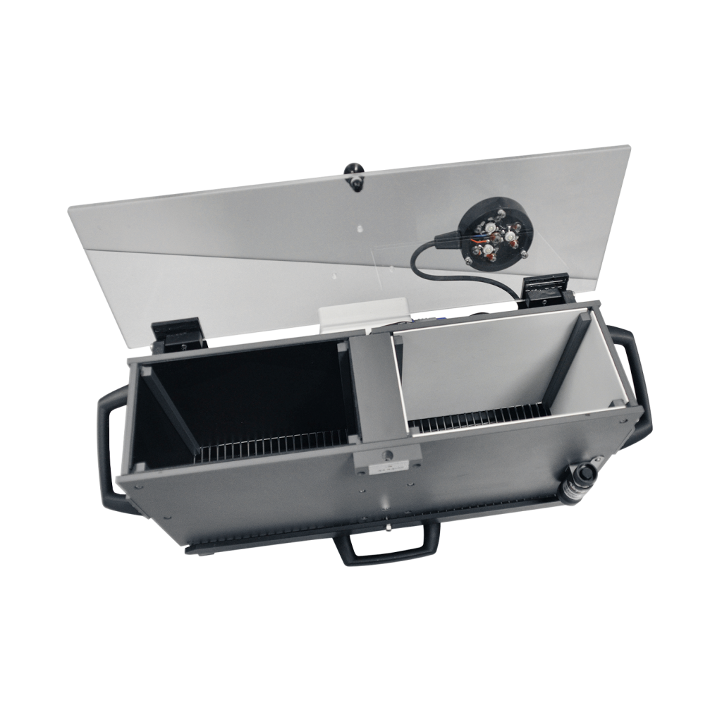 К основным компонентам системы пассивного избегания Ugo Basile относятся устройство управления и клетка, разделенная на два отсека перегородкой с раздвижной дверцей.