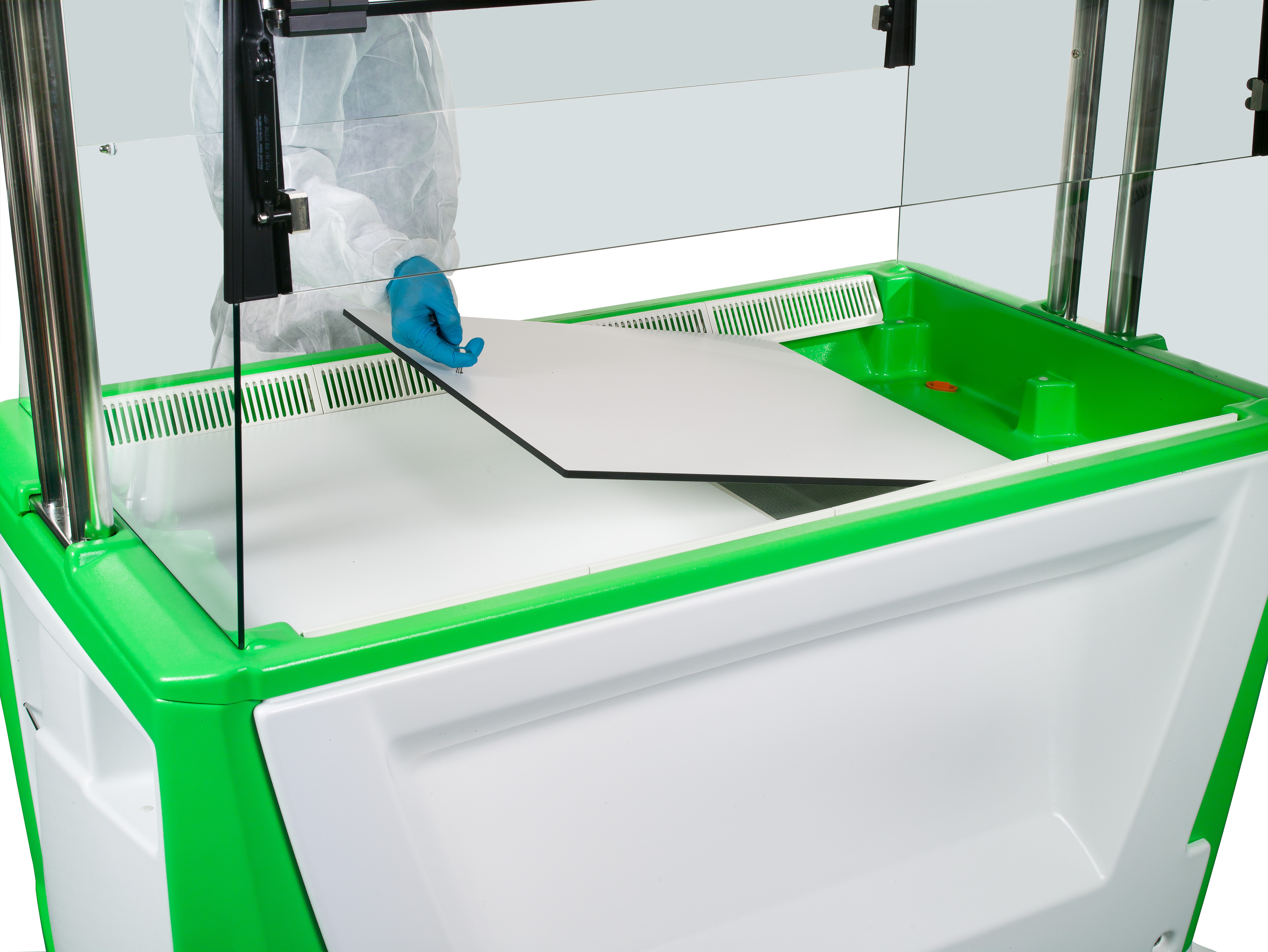 •  Возможность тщательной очистки: отсутствуют острые углы и прямолинейные кромки; рабочие панели TRESPA® легко снимаются для проведения стандартных процедур дезинфекции и/или стерилизации в автоклаве