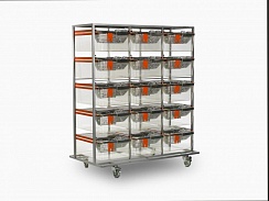 Стеллажи Tecniplast не имеют равных среди конкурентов по уровню содержания лабораторных животных и санитарной безопасности. Они производятся из нержавеющей стали, поэтому соответствуют самым высоким характеристикам по эргономичности, бесшумности и охране труда. Имеют эстетичный внешний вид, выпускаются разных размеров и конфигураций, начиная с 15 клеток, и заканчивая 20-ю. Вы можете купить стеллаж для вивария или лаборатории любого размера.