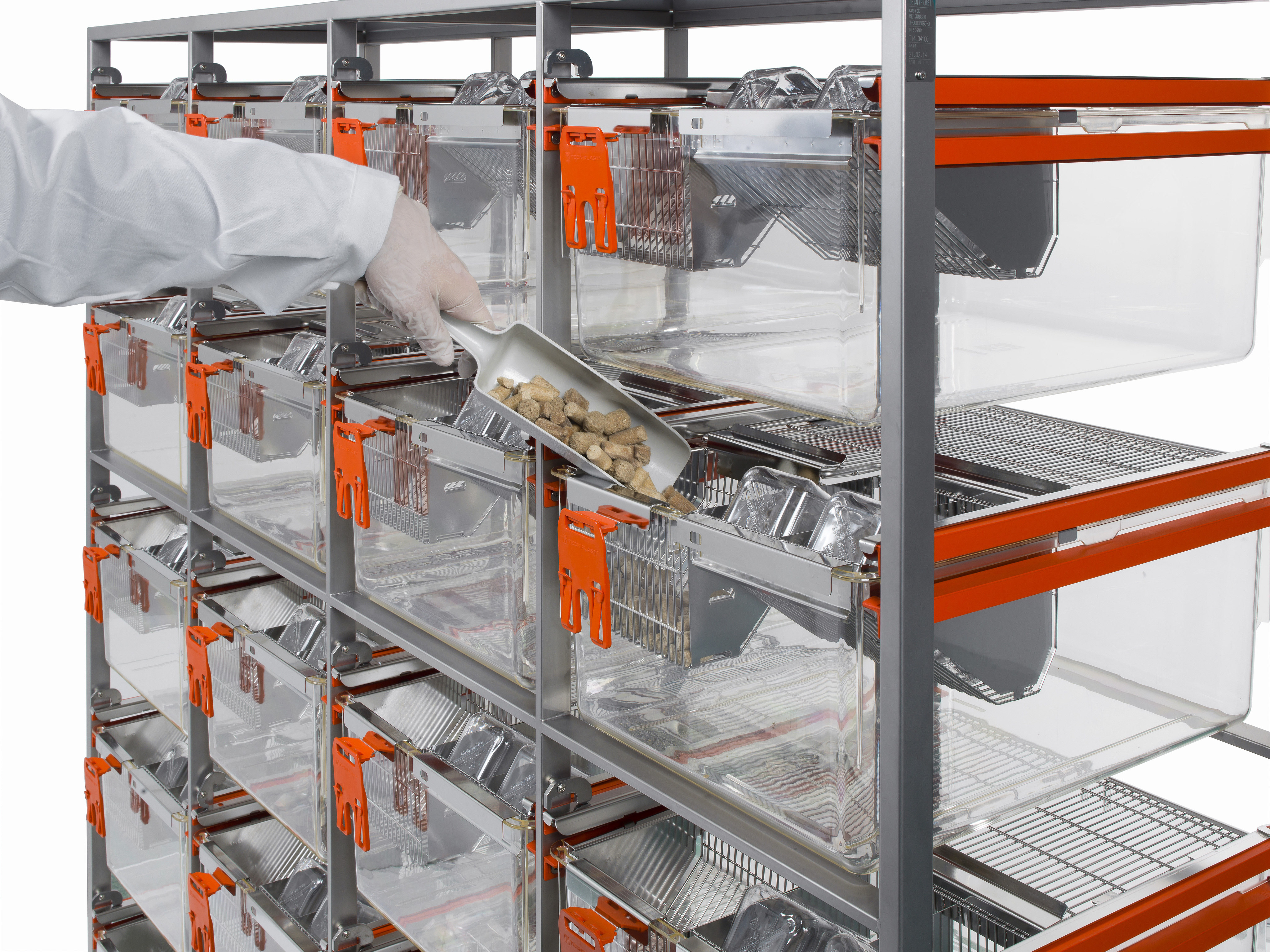 • Клетку не нужно извлекать из стеллажа, чтобы достать лабораторное животное, что снижает риск повышенных нагрузок на опорно-двигательный аппарат персонала. Все процедуры выполняются быстро и безопасно.