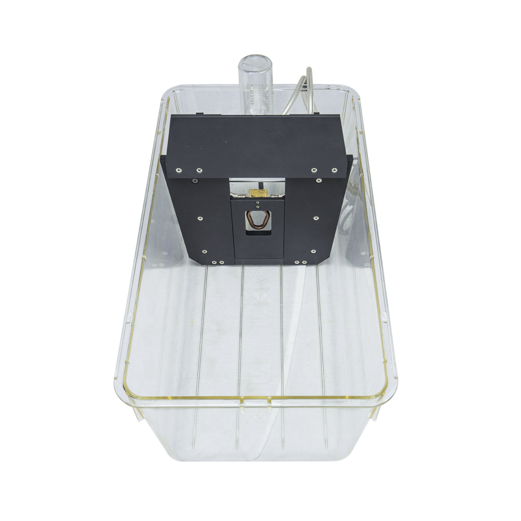 Термический стимулятор состоит из контура медной трубки и водяного термостата, температура которого может регулироваться от комнатной до 70 °C для достижения высоких ноцицептивных порогов. В комплект входят вставки для подбородка для тестирования животных разного размера.