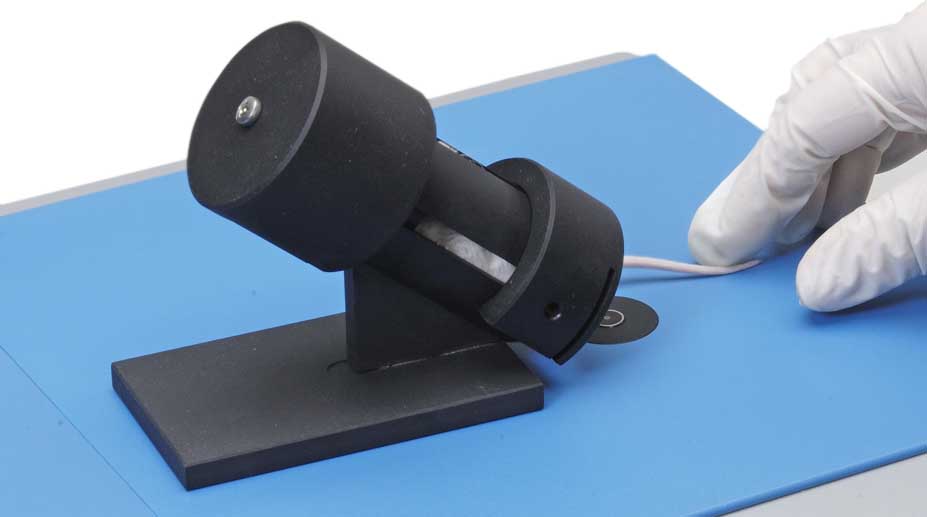 Животное удерживается оператором на верхней панели прибора таким образом, что его хвост располагается над установленным источником ИК излучения.