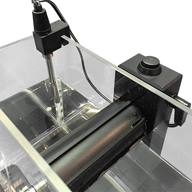 Резервуар наполняется водой с температурой 25°C, при этом колесо просто лежит на поверхности воды. Датчик температуры, который можно установить с обеих сторон резервуара, обеспечивает передачу информации о фактической температуре. Число оборотов (по часовой стрелке и против часовой стрелки) определяется с помощью точного датчика вращений.